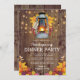 País russo, graças a convites jantes com fundo de celeiro de madeira, folhas de outono, uma lanterna acesa, luzes cintilantes de cordas e um modelo de festa de Ação de Graças moderno.