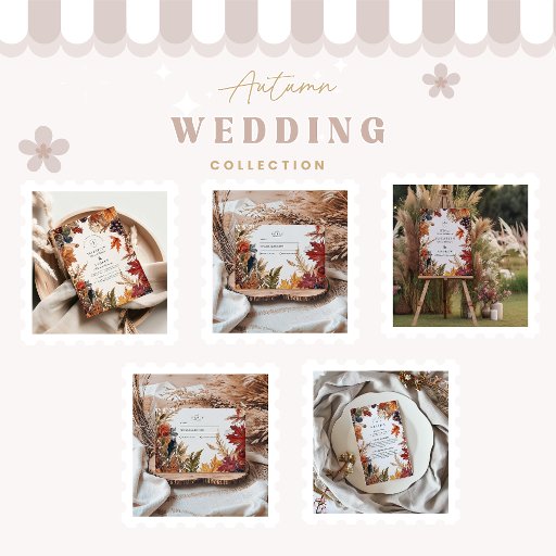 Celebre o seu grande dia com os tons quentes e terríveis do outono. Este design rústico apresenta folhas pintadas à mão, pineges, bolotas e florais em aquarela macia — perfeito para um casamento outono aconchegante. Totalmente personalizável com seus detalhes.