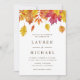 Convide convidados para este convite de casamento no outono. Apresenta a camada aquosa de folhas em tons de outono com um padrão correspondente. Personalize adicionando nomes, datas, horários e outros detalhes. Este convite de casamento é perfeito para casamentos outono. Itens correspondentes estão disponíveis.