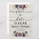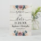 Diga aos seus convidados para salvarem a data com estas flores florais, solenes mas elegantemente rústicas, de madeira aquosa, em azul enferrujado e rosas claro com fundo de madeira. Perfeito para um local de casamento de celeiro/fazenda.