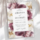 Numa sinfonia de romance eterno, este luxuoso convite floral de aquarela captura a essência da elegância rústica com a sua abundante exposição de peões na harmonização da pesada profunda, ameixa e branco de marfim mole. Os elementos botânicos femininos são tecidos em uma tapeçaria artística da recompensa da natureza e preparam seus convidados para o casamento encantador chegar. Um modelo de texto moderno apresenta seus detalhes de casamento com charme e sofisticação.