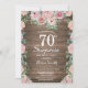 Rustic Floral Pink Surpreende 70 de Aniversário Convite para Mulheres. Flor Floral de Aquarela. Rosa Rosa Rosa Elegante e Flores de Pêonias. Aniversário Adulto. Fundo Rustic Wood. Retro de Vintagem do País. 13 15 16º 18º 20 21rua 30 40º 50º 60º 80 de 70 100º, qualquer idade. Para mais personalização, clique no botão "Personalizar" e use nossa ferramenta de design para modificar este modelo.