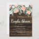 Esses casais rústicos e modernos convites para brunch chá apresentam flores aquarelas e folhas em tons suaves de rosa-pincel, pêssego, branco e azul, com sotaque moderno de falsos pontos dourados, sobre um fundo de aparência castanha.