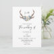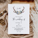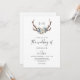 Este convite de casamento rústico de chic boho com chifres apresenta as iniciais monográficas da noiva e do noivo moldadas por chifres de fenda que são decorados com uma cor d'água azul empoeirada e buquê floral creme. Entre em contato comigo através do Zazzle Chat se você precisar de ajustes de design, mais produtos correspondentes ou outras formas de cores.