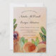 Flores rústicas pintadas a mão lindas com uma letra semissformal de escrita. Edite facilmente o modelo para os nomes de casamento e detalhes desejados. Um convite de casamento elegante para qualquer época do ano. Cores boêmicas de laranja queimada, terracota, marrom, bege e e verde. O trabalho de arte floral original foi feito com tinta alcoólica. Convocação para Casamento Floral Russo.