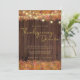 Elegante Rustic Graças Watercolor Autumn Leaves Janta Convite de festas com tipografia no estilo folha de ouro na moda com uma coloração aquática quente em tons de colheita e tons autunares de abóbora, merlot, castanho de avelã e folhas de ouro de mel em um fundo de madeira de celeiro rústico, erguidos com uma corda de luzes festiva. Adicione facilmente os seus detalhes e a data para um convite de na moda. Projetado pelo Zazzle Pro Designer BK Thompson exclusivamente para Cedar & String.