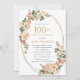 Honra uma mulher especial com esta elegante e feminina 100ª convite de aniversário. O centésimo é escrito em grande texto dourado. A comemoração de aniversário segue. O nome do convidado também está em letras maiúsculas de ouro. O resto do texto é cinza de pomba mole. Os detalhes da celebração de aniversário são cercados por uma moldura de ouro cônico que é decorada com rosas brancas de marfim macio, flores cor-de-rosa e folhas de eucalipto. Enquanto é um design tradicional, a folhagem botânica aberta e arejada e o texto lhe dão uma vibração contemporânea. Infelizmente, os 100 algarismos não são editáveis. Se precisares de mais um ano, terei todo o prazer em fazer um design personalizado para ti.
