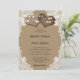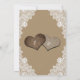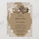 Este romântico convite de casamento russo, com dois corações de burlap, em um fundo de papel kraft, enfeitado com um rendas floral branco e luzes de cordas é perfeito para convidar seus convidados para sua festa de casamento rústica de campo/celeiro. Papel Kraft decorado com luzes de cordas, rendas e dois corações de braçadeira com monogramas no fundo.
