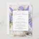 This bridal shower invitation features a rustic romantic floral design with soft lavender and purple blossoms and lush green foliage framing the layout. A vintage-style background with handwritten script and a decorative vase adds an elegant, timeless charm. The overall composition blends classic beauty with gentle whimsy, creating a warm and inviting tone perfect for celebrating love and new beginnings. The back of the card is a full version of the beautiful floral illustration. Personalize with your own information.