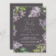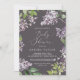 Este convite à chá de fraldas lilás rústico é perfeito para um primavera ou chá de fraldas de verão. A romântica e elegante design floral apresenta flores lilás roxas de aquarela com uma sensação de jardim boho country.