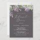 Este convite para janto de ensaio de cinza lilás rústico é perfeito para um ensaio de casamento de primavera ou verão. A romântica e elegante design floral apresenta flores lilás roxas de aquarela com uma sensação de jardim boho country.