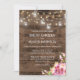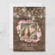 Este belo e elegante convite de casamento mostra jarras de pedras, luzes de cordas e um buquê de casamento de cor d'água borrado e esbranquiçada sobre fundo de madeira. A parte traseira da placa apresenta sua própria foto. Fácil de personalizar com sua própria foto, nome e informações de casamento, incluindo o site do casamento (opcional). Por favor, entre em contato comigo com as personalizações adicionais de design que você precisar para o seu belo casamento. Design © por TK Goforward. Para coordenar itens, visite minha coleção Rustic Mason Jar Lights e Floral Wedding e minha loja Zazzle: