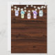 Um convite de casamento com textura rústica de madeira com jares de época de hydrangea floral e uma corda de luzes. Este convite faz parte de um conjunto.