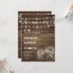 Apresente seus convidados ao seu casamento rústico, de madeira com nosso convite de casamento único com um fundo de madeira e uma ilustração de Mason jar. O design é completado com cordas de luzes, adicionando um toque quente e íntimo. O convite contém texto de ambos os lados, fazer perfeito para compartilhar todos os detalhes importantes do seu dia especial. Também incluímos a opção de adicionar um código de QR à parte traseira do convite, oferecendo aos seus convidados acesso fácil a informações adicionais ou a um RSVP digital. Oferecemos opções de orçamento e de papel premium e você pode até solicitar um download digital deste design para impressão doméstica DIY ou enviar como convite digital por e-mail ou texto. Adicione um toque de encanto rústico ao seu casamento com este belo design de convite. Este convite de casamento para a madeiras rústicas é perfeito para um casamento com um tema de madeira, ao ar livre ou celeiro. A ilustração do Mason jar e cordas de luzes adiciona um toque encantador ao convite e é adequada para todas as estações. Quer você esteja planejando um casamento no outono, inverno ou outono, este convite irá dar o tom para seu dia especial e será um jogo de excelente para um casamento temático rústico, country ou vintage.