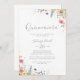 This rustic meadow botanical Quinceañera invitation is perfect for a garden 15th birthday party. The design features seamless hand-painted yellow, navy, blue, yellow, pink, and blush wildflowers with botanical leaves.