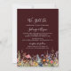 This rustic meadow botanical we still do vow renewal invitation is perfect for a modern vow renewal ceremony and celebration. The design features seamless hand-painted yellow, navy, blue, yellow, pink, and blush wildflowers with botanical leaves in a deep burgundy background.