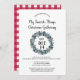 Rustic My Favorite Things Christmas Convite de festas wreath with festic red berry, O convite é vermelho e cheques de fazenda brancos. Nosso modelo de alta qualidade torna simples personalizar seu convite. Se quiser personalizá-lo ainda mais, use o link "personalizar mais". O convite faz parte de uma coleção. Projetada por Beverly Bainbridge Homespun Cottage Designs E: homespuncottagedesigns@gmail.com