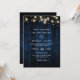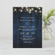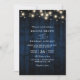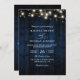 Convites Rustic Navy Blue Wood String Light QR Code Wedding