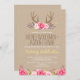 Rustic Peony and Deer Antler Wedding Invtions - apresenta um fundo de papel kraft impresso com cervos, péones cor-de-rosa e folha de ouro falsa impressa e letra correspondente. Os convites para casamento de Deer antler podem ser totalmente personalizados usando o botão "personalizar" se você precisar de mais opções para fontes, colorir e muito mais. Você pode atualizar o estoque do cartão ou a forma dos convites acima.