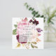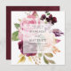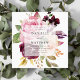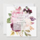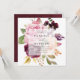 Convites de casamento florais elegantes, quadrados, com um buquê de rosas de aquarela e verde em tons de pincel, pêssego, roxo, burgundy e verde. Os detalhes do seu casamento são mostrados num quadrado branco no centro do convite.
