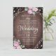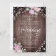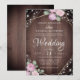 Convites Rustic Pink Floral Wood & String Lights Wedding