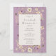 Este design apresenta um fundo roxo lavanda envelhecido com um quadro de texto branco suave cercado por flores silvestres delicadas. Criado pela imprensa simplesmente de farmácia.