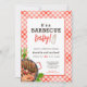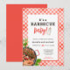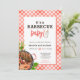 Our Modern Rustic Grill Barbecue Gender Neutral Baby Shower Invitation is designed with a red gingham background, an illustrated watercolor grill, a combination of bold and script playful typography, combined with greenery and a baby bottle. This invitation is perfect for a summer backyard outdoor party celebration.