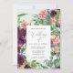 Este belo convite fotográfico de casamento contém elementos botânicos florais vibrantes colocados contra um fundo verde pastel bonito. Este convite chic inclui toques de caligrafia bonito.