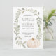 Incêndio aos seus convidados com este elegante convite de casamento com lindas folhas e abóbora branca rústica. Basta adicionar os detalhes do seu evento neste modelo fácil de usar para torná-lo um convite de tipo único.