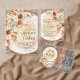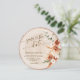 Anuncie seu dia especial com este rústico grão cortado de madeira redonda salve o cartão de data, projetado para se assemelhar a uma fatia de tronco de árvore com anéis de madeira naturais. Apresentando detalhes florais de aquarela em teracotta quente e tons boho, este anúncio de casamento único e criativo é perfeito para casamentos de campo, celeiro, fazenda, ao ar livre e florestas. A forma redonda adiciona um toque verdadeiramente engajador e eterno, definindo o tom para uma celebração romântica e inspirada na safra. Quer você esteja planejando um casamento boho-chic, rústico ou com temas da natureza, este grão de madeira salva o cartão de data belamente mistura charme orgânico com elegância.
