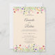 Celebrate your special day with this elegant wildflower garden wedding invitation, featuring colorful botanical florals arranged beautifully along the top and bottom borders. The soft beige background paired with romantic script typography creates a timeless yet charming countryside aesthetic.