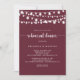 Este corda rústico acende o convite de janto de ensaio burgundy é perfeito para um evento simples. A design apresenta belas luzes de cordas pintadas manualmente em um fundo burlão.