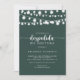 Esta corda rústica ilumina o chá de panela espanhol verde é perfeito para um simples chá de casamento. A design apresenta belas luzes de cordas pintadas manualmente em um fundo verde.