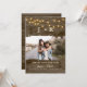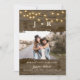 Defina o tom para o seu grande dia com esta foto rústica, salve o cartão de data com seu monograma, luzes brilhantes de cordas e uma textura de madeira de celeiro com um quadro fotográfico estilo pincelada. Perfeito para casamentos de campo, fazenda, ou ao ar livre, esta carta personalizada destaca sua foto favorita de noivado enquanto a mantém maravilhosamente na Terra e romântica.