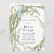 Design apresenta um elemento floral colorido impresso em tons de verde e azul-poeirento e borboletas azul-bebê em fundo canvas. Caligrafia ou tipo escrevendo com o trabalho de arte de design. Misturar e combinar peça de coleção. Excelente para as comemorações do casamento!