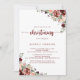 Este convite para o batizado de caligrafia floral de verão é perfeito para um simples batismo ou batismo para bebês. A design apresenta flores de aquarela, cor-de-rosa e borbulhante, com folhas verdes em fundo castanho manchado.