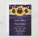 Este convite de casamento rústico, roxo, que mostra girassol contra uma pá e madeira do celeiro é perfeito para convidar seus convidados para sua festa de casamento rústica roxa inspirada pelas flores de girassol. Fácil de personalizar a modelo.