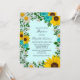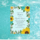 Convite russo ao batismo, com girassóis vibrantes, margaridas brancas tradicionais e flores lacrimogêneas contra um fundo aquoso leve com sopro de bebê e sotaques botânicos verdes