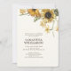 Composto por uma escrita cursiva e pela tipografia serifônica, tudo contra um pano de fundo de madeira na parte de trás do cartão e flores girassol felizes. Este foi projetado por materiais de terceiros selecionados, exclusivos para o Zazzle. Disponível aqui: http://www.zazzle.com/selectpartysupplies