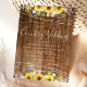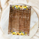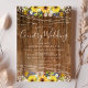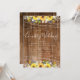 A Rústica Corda De Girassol Acende Convite De Casamento De País. Flores solares, luzes de cordas, de cor branca, sobre um fundo de madeira rústica.