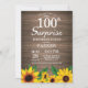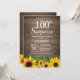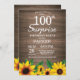 Convites Rustic Sunflower Surprise 100th Aniversário