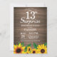 Convites Rustic Sunflower Surprise 13 de Aniversário