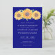 Convide a família e amigos para o dia especial com este convite de casamento para flores solares de na moda. Girantes amarelos vibrantes sobre fundo azul-marinho com texto branco.