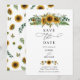 Rustic sunflower save the date invitation featuring watercolor sunflowers and greenery. Text editable in the Zazzle editor.