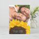 As cores de fundo (cor de cartão) e fonte podem ser editadas para qualquer cor personalizada que corresponda às suas Cores de Casamento usando qualquer combinação de cores. Farmhouse Country Floral Large Sunflower em Bottom of Back com sua foto inserida. A Frente tem um Grande Girassol como pano de fundo do seu Convite de Casamento com Embelagens Brancas e Românticas, além de uma camada para iluminar o fundo e destacar a mensagem. Trendy Popular message, que pode ser editada para outra citação favorita, se desejar. Hoje Eu Casado Meu Melhor Amigo. Perfeito para Queda, outono ou Verão, tropa de fazendeiro russo do Carão ao ar livre.
