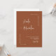 Este elegante convite de casamento minimalista apresenta um fundo de terracota limpo com na moda caligrafia dos nomes do casal e uma letra serif simples para os detalhes do evento. O design do eterno inclui uma grande foto personalizada do casal feliz no verso, acompanhada por um código QR que permite aos convidados RSVP rápida e convenientemente. Perfeito para casamentos modernos, minimalistas e inspirados em ventre, essa design versátil complementa uma variedade de temas de casamento. Tente se tornar ecológico com este convite ecológico completo, reduzindo a necessidade de RSVP adicional e cartões de detalhes. Personalize o convite facilmente adicionando sua própria foto e personalizando os nomes e as palavras em apenas alguns cliques. Por favor, note: a redação de "gentilmente junte-se a nós para o casamento de" na frente E "gentilmente responda por" no verso do convite não pode ser editada, alterada, movida ou excluída. Eles estão consertados. Se você quiser mudar a cor, poderá personalizar facilmente o convite para corresponder ao seu tema de casamento clicando em "Personalizar o convite". Você pode personalizar este convite com seu texto e compartilhá-lo digitalmente através de texto, email ou mídia social. Preferir um toque tradicional? Você também tem a opção de enviar uma versão impressa para seus convidados — ou faça ambos para uma conveniência adicional!