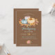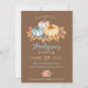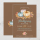 Rústica Ação de Graças convites com a cor d'água, outono, arte floral de abóbora sobre fundo marrom com texto amarelo e azul.