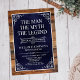 Ele É O Homem O Mito A LENDA! Sua vida tem sido uma aventura incrível e é hora de celebrar seu legado e ele. Este livro azul de marinho, de madeira rústica, apoiado em madeira rústica, com tipo branco e cantos brancos rolados, é perfeito para convidar amigos e familiares a se juntarem a vocês para honrar e celebrar este incrível aniversário de marco! Para ver seus convites exclusivos, clique em "Personalizar este Modelo" e digite suas informações. É super fácil!