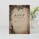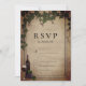 Um cartão RSVP para corresponder ao nosso convite para o casamento. Se você vai se casar entre as vinhas ou em uma adega local, este pacote de convites para casamento, cartões RSVP e favores é a solução perfeita que vai carregar seu tema. Este cartão RSVP tem vinhas de uva entrelaçadas na borda em um papel de pergaminho rústico falso. Vinho e uvas decoram o fundo. Fácil de personalizar, mas entre em contato com o designer se precisar de assistência.