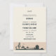 Um convite de casamento rústico para vintage, com uma letra de estilo ocidental, bem como uma ilustração vintage de duas silhuetas no cavalo, um celeiro e outros elementos ocidentais do país contra um pano de fundo do deserto. Romântico e cheio de charme rústico, é uma escolha adorável para um casamento de celeiro, um casamento ao ar livre, um casamento de churrasco ou qualquer cenário rústico com um tema de casamento country Western, cowboy.